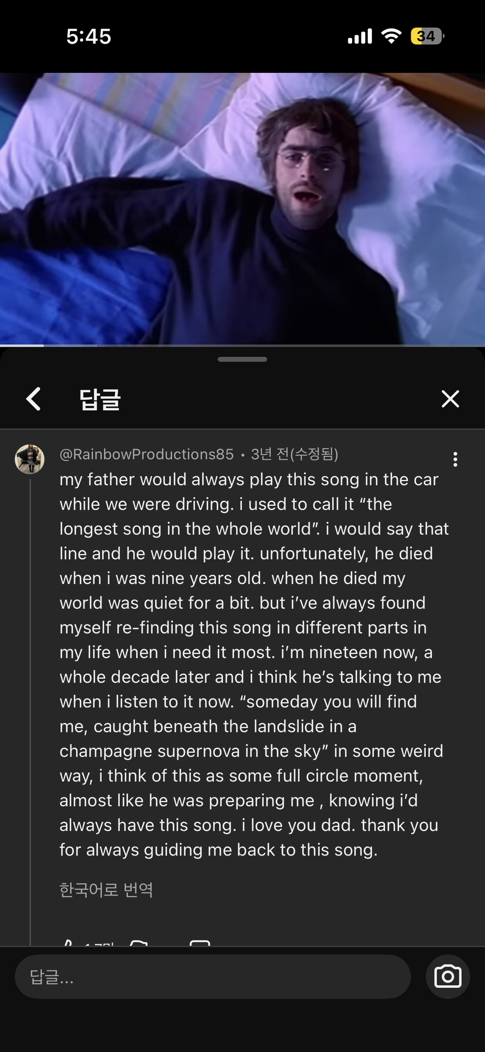 my father would always play this song in the car while we were driving. i used to call it "the longest song in the whole world". i would say that line and he would play it. unfortunately, he died when i was nine years old. when he died my world was quiet for a bit. but i've always found myself re-finding this song in different parts in my life when i need it most. i'm nineteen now, a whole decade later and i think he's talking to me when i listen to it now. "someday you will find me, caught beneath the landslide in a champagne supernova in the sky" in some weird way, i think of this as some full circle moment, almost like he was preparing me, knowing i'd always have this song. i love you dad. thank you for always guiding me back to this song.(FEEL PRE ODRDER)